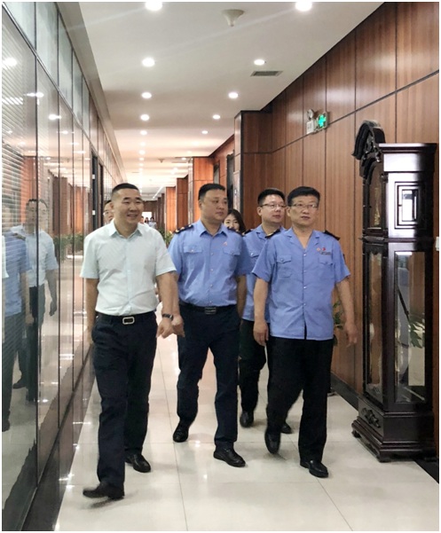 2018年6 月15日,西咸新区沣东新城食品药品监督管理局张新炳局长一行来到西安市新龙药业有限公司实地查看企业营业场所、质量管理体系和智能配送中心,并就国家政策在管理实施过程中的实际问题与公司董事长聂立渠进行了深入交流。